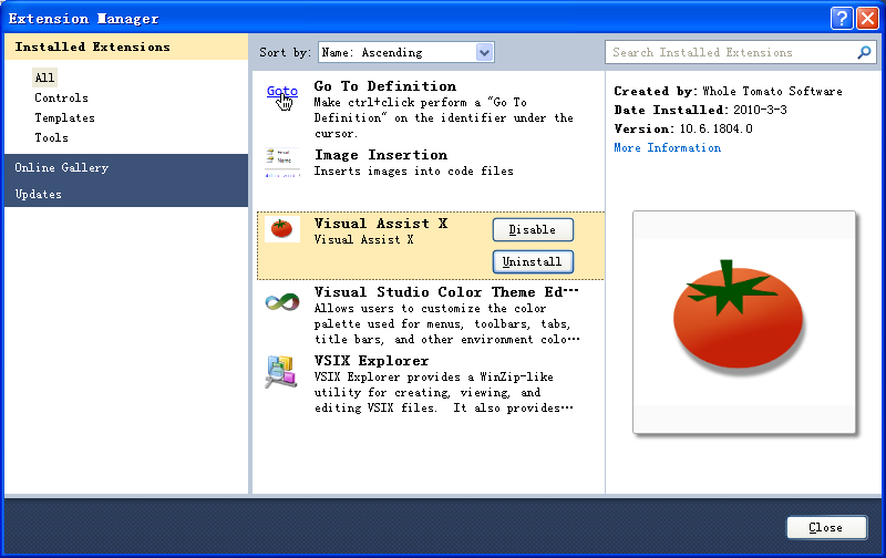 C:\Users\Win7的登录帐户名\AppData\Local\Microsoft\VisualStudio\10.0\Extensions\Whole Tomato Software\Visual Assist X\10.6.1819.0