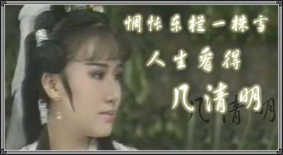 《金剑》之中,最令人心驰神往的,是它的人物,以及人物之间那些错综纠葛的感情。年纪小小的时候,我已懂得迷恋萧翎的眉宇间那一股若有似无的忧郁。没有由来地觉得他该与小钗携手终生。只为,她是他的最初。直到十多年后的今天,当我再度沉溺于这个侠骨柔肠的武侠世界,仍然不可抑止地遗憾着。无庸讳言,百里冰很美,尤其她与蓝玉堂的月下对酌,宛若出尘仙子。但皮相易老,终究不如心性与气度,美得有底蕴些。岳小钗是大气温婉的。是峭壁上的梅,天寒地坼之中亦有不屈的清香。沈海蓉中途受伤,离开金剑剧组,是一大憾事;但后半部的小钗身逢巨变,那种端庄自持的风姿,欲笑还颦的神韵,非张咏咏不能诠释。这个完美得近乎于典范的女子,无论哪一张面孔,都同样地令人怜惜。也因为小钗的缘故,顺便爱了那个痴执成狂的宋子秋。宁同万死碎绮翼,不忍云间两分张,萧翎在他面前,该是汗颜的。