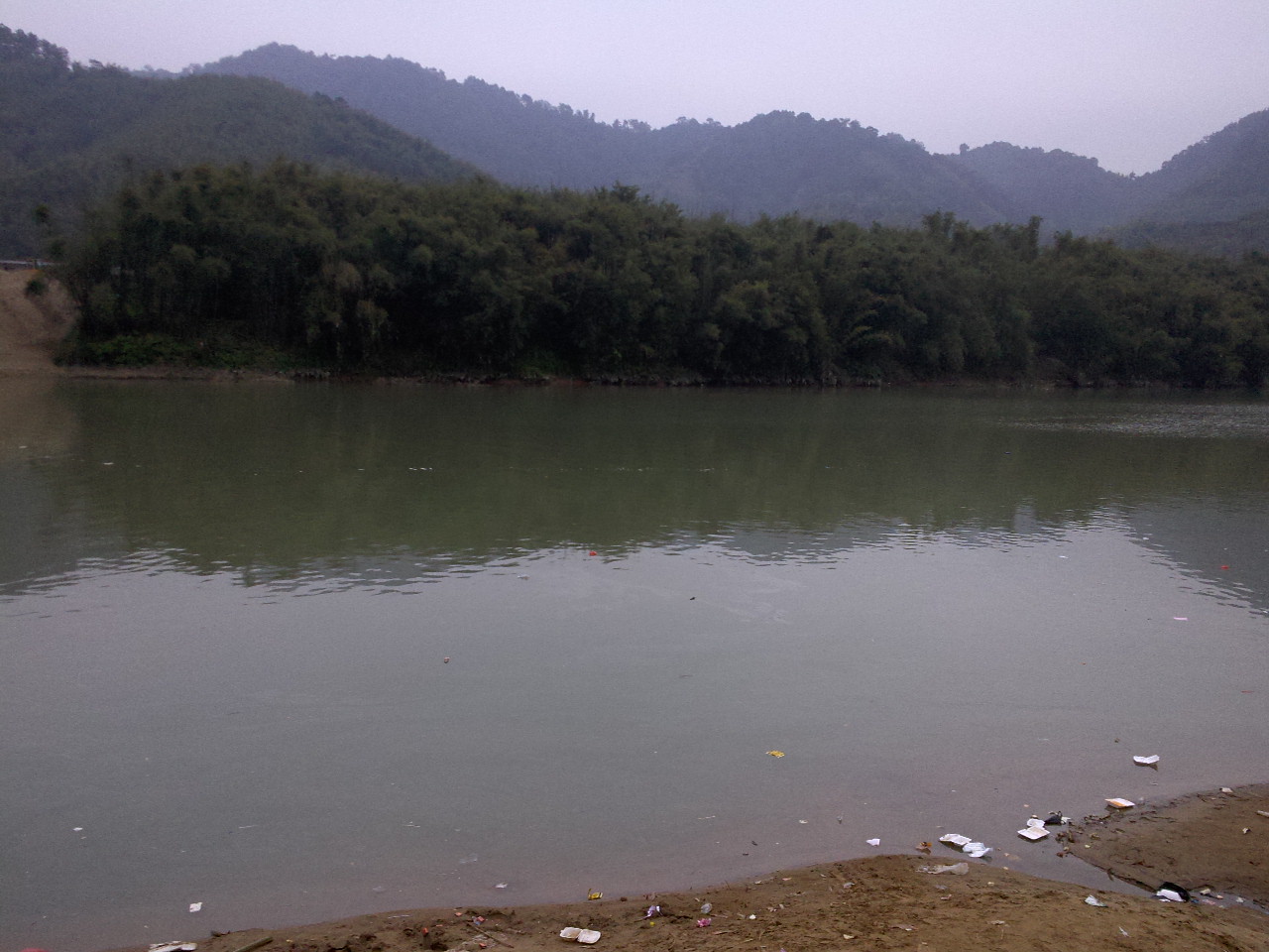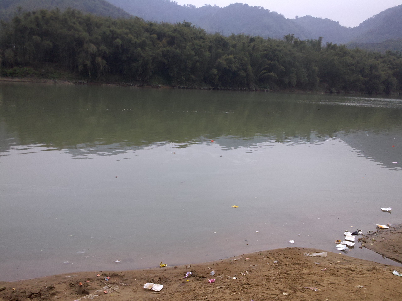 山青,但水不秀。河边是竹子,整条河的河边都种有“防护竹”。