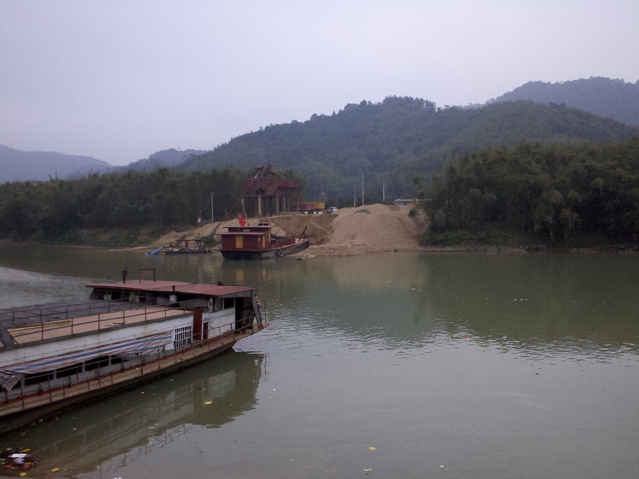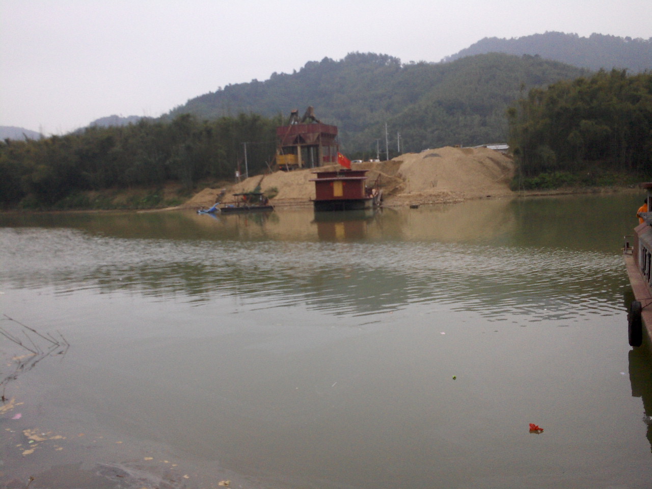 河对岸的是一个沙场。