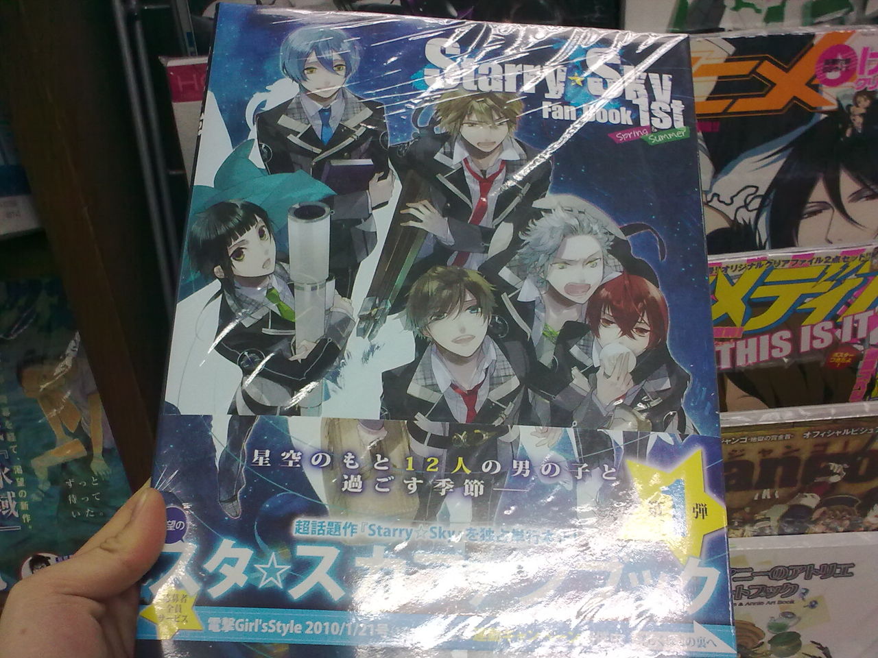 手机没那个黑框框= = 今天在上海外文书店4楼看到的星座彼氏的fan book,好像是第1本吧,但是死贵,273块一本。拍了封面照,想拍价钱的时候被店员阻止了= = 我现在在外面,图片回头补。有钱的可以去买,没钱的可以去…饿…瞻仰一下…