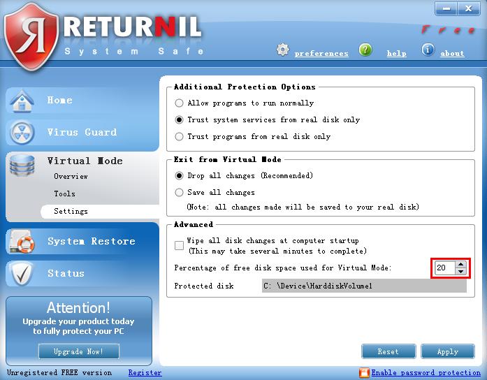 RVS 2010家庭免费版 还有就是没什么保护或者开放模式。 就一个什么虚拟系统