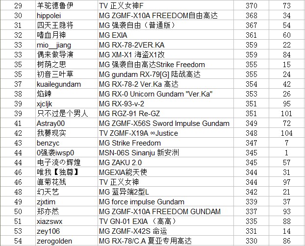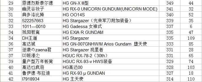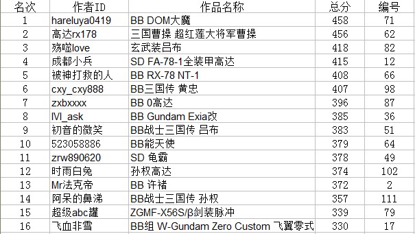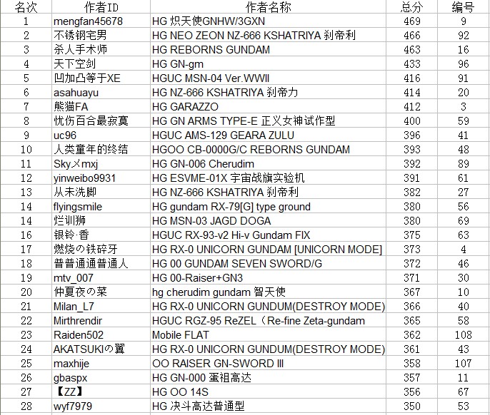 作为小吧给大家点贡献。。就蛋疼得制作下排名。。
