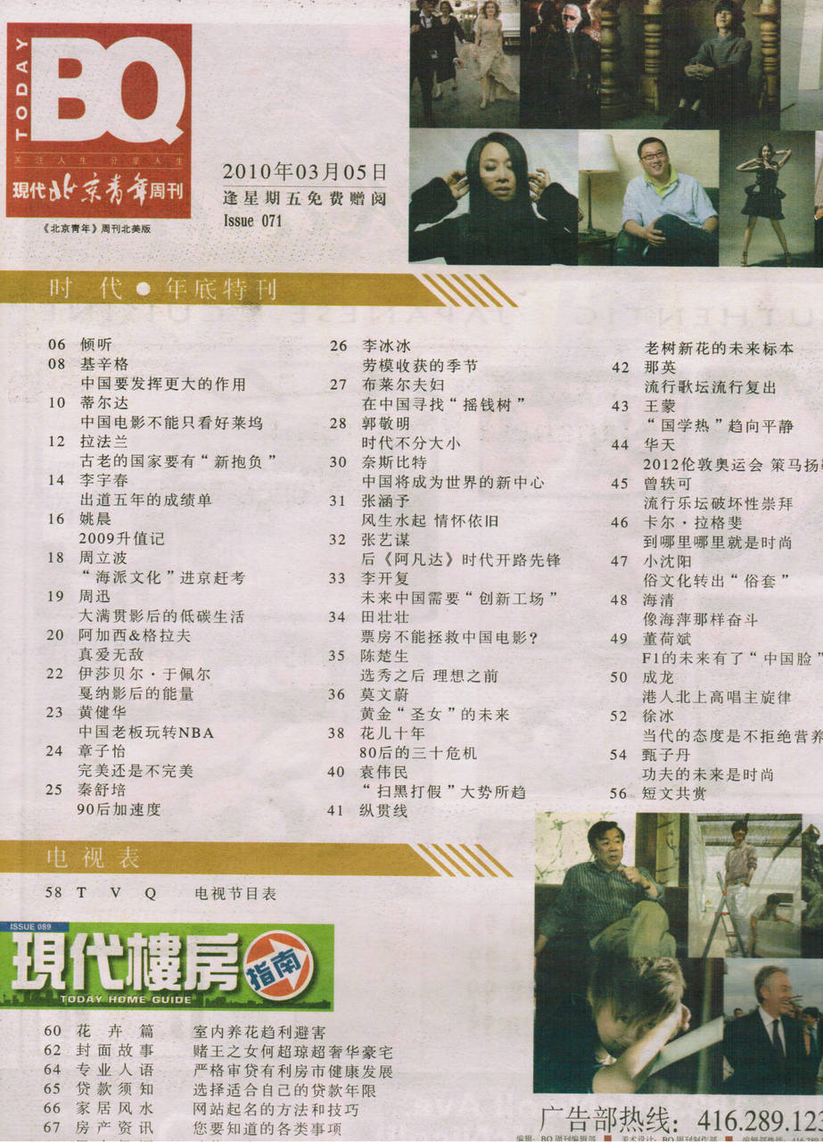 这篇文章发布在北京青年周刊北美版, 2010年3月05日第71期 的 年度特刊 上