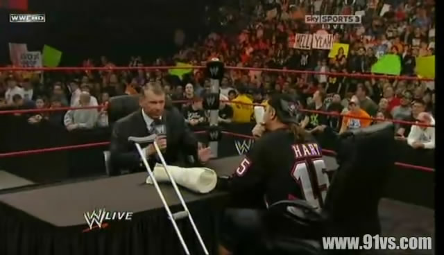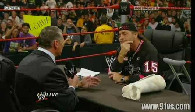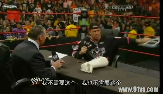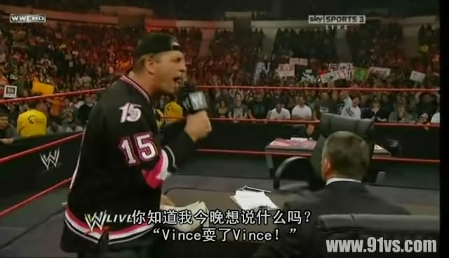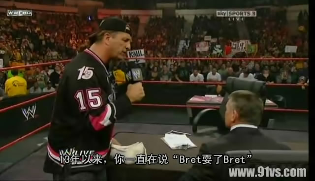 3月16日,奥斯汀主持bret与文斯的WM大战签约仪式。