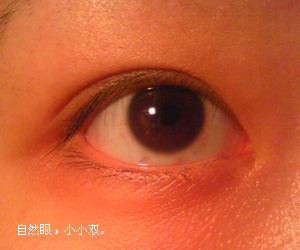 裸眼,很一般的双眼皮,很一般的眼睛大小,无神,呆滞。