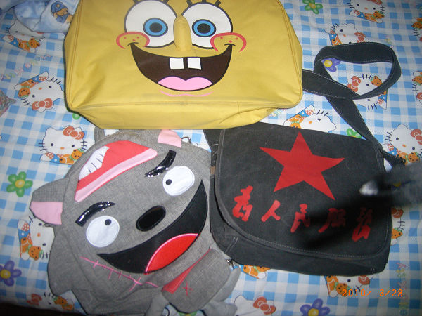 我觉得最萌的是那个灰太狼的背包啊。。太喜感了- -