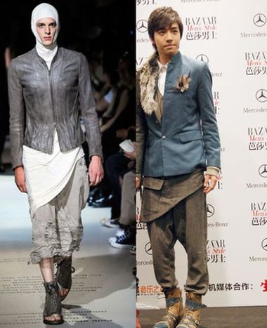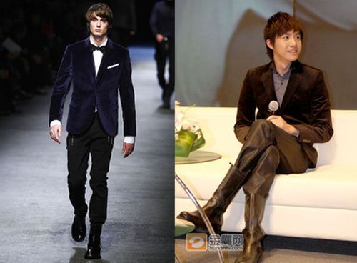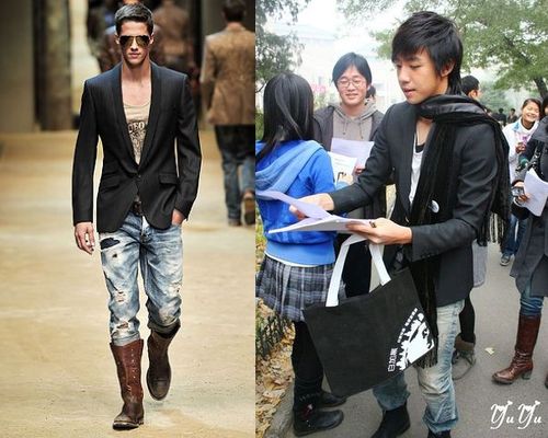 2010春夏男装最时髦搭配,D&G会告诉你:请西装内搭T恤,领口不要紧紧地箍住脖子;请下搭牛仔裤,颜色、款式没有太多限制,看起来旧旧的更好,一双帅气的短靴,显得潇洒不羁。