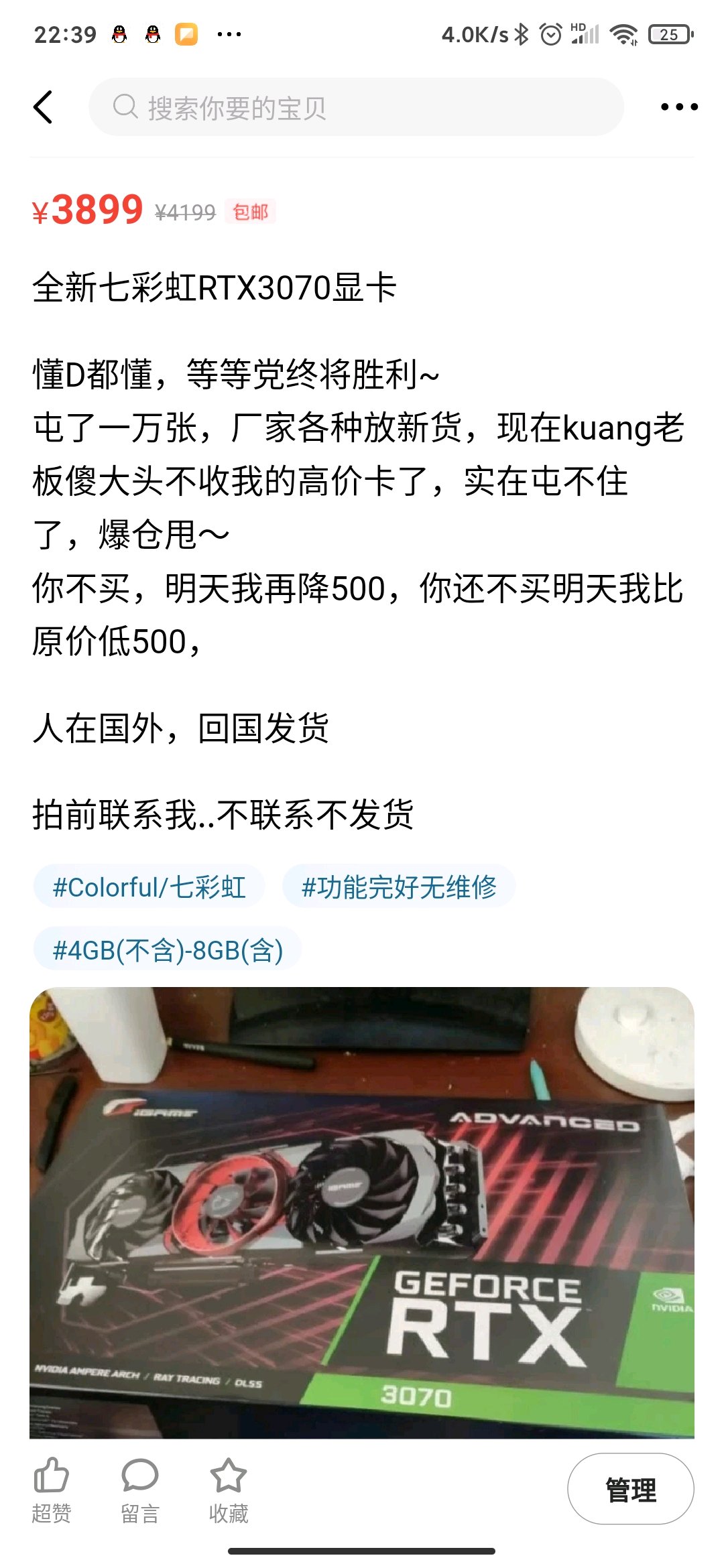 要忍住,你可以你行的,那可是白花花的银子买来的溢价卡,要七天无理由退,允许你拍个照挂一下2499,3899海鲜一波