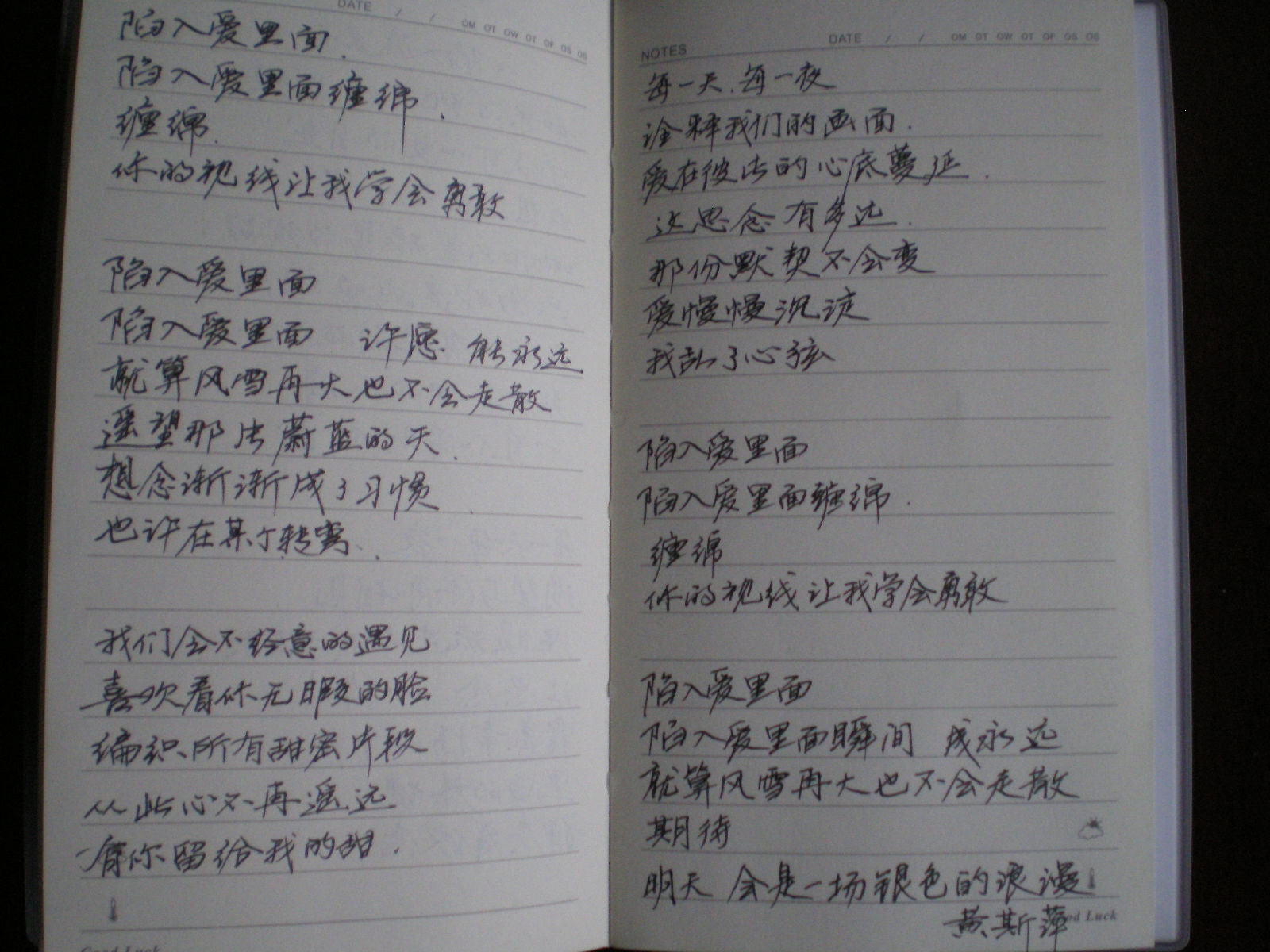 嗯。。我新买的本子,就写了一首。