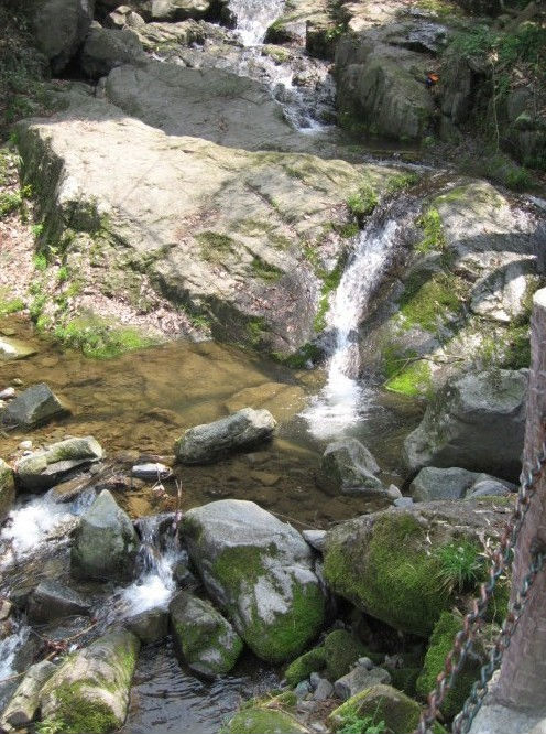 那个从山上留下的一泓清水在阳光的照射下彩虹色时隐时现。