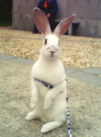 某小孩路过说:哇,小白兔,它眼睛怎么是黑色的?