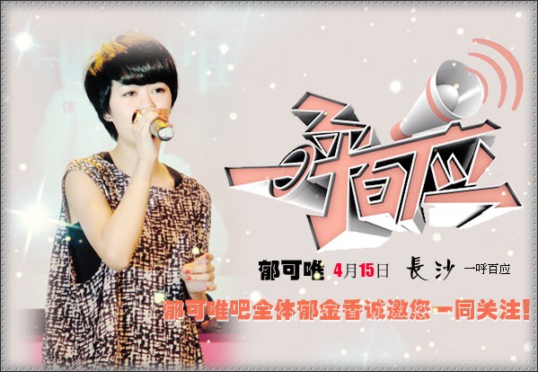 4.15日晚18:00~19:00 郁可唯将在长沙 录制一呼百应