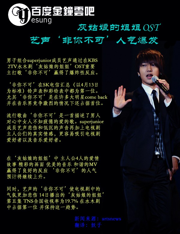 ┝KRY┥[10.04.15_新闻]《灰姑娘的姐姐》OST 艺声“非你不可”人