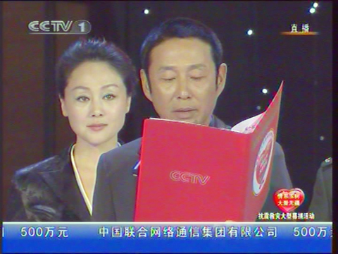 你们都很快哦!我在家看的电视,老大今晚好美!老大的镜头也挺多,嘻嘻摄像的也喜欢拍美女!就是说的不多老大就朗诵了一句!ZZY朗诵的一点都不好没有感情像是在念书居然还让她朗诵两句也不知导演怎么安排的!