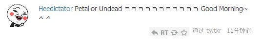 Heedictator Petal or Undead ㅋㅋㅋㅋㅋㅋㅋㅋㅋㅋㅋ Good Morning~ ^-^ 回复回推官方RT收藏 通过 twtkr 9分钟前