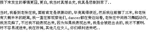 那个导演说,张佑赫十分钟表演,真的是震撼到了..然后音乐响起来的时候.我们很被吓到了.真的被吓到了...啊啊 ...然后老张很帅气的在跳...哈哈哈.