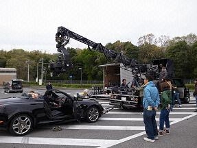 用远隔起重机的摄影机来牵引车子.