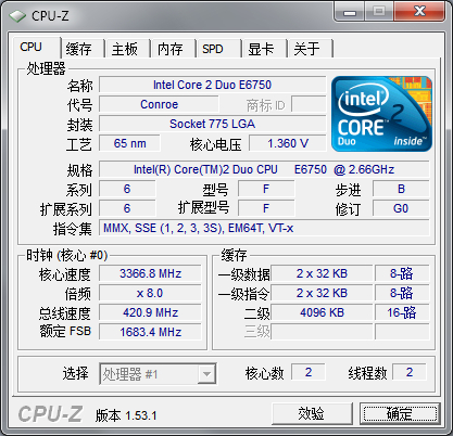 至少工艺.外频倍频FSB都是对的 电压你可以理解为它只认出了一个核心 然后凶残的认为两个核心就X2就是了