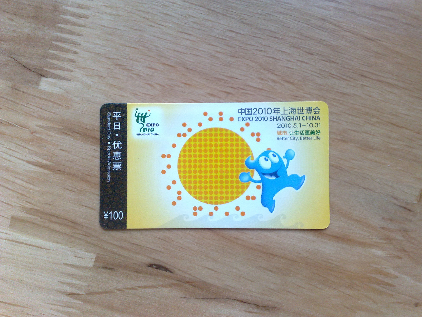 世博门票呢分好多种,咱买的都是优惠票,100元一张!