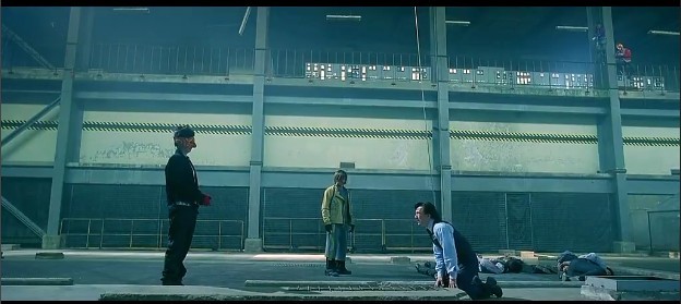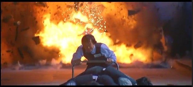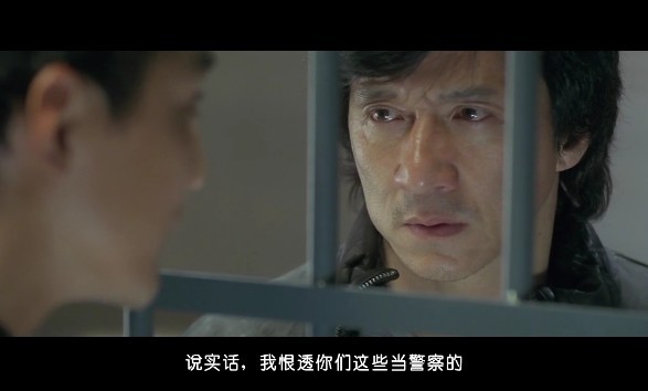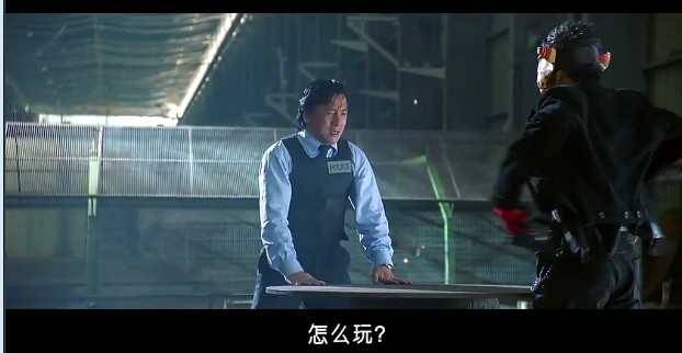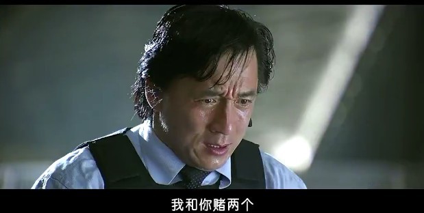 这个场景很经典,它反映了两个人复杂的内心.一个极度悲伤外加恐惧紧张,一个极度亢奋狂野外加自大.这个鲜明的对比可以直观人内心世界,最后成龙的一跪是那么无助,其实他内心十分明白,即使他跪下求他们,他们也不会放过那些警察,但他还是这样做,因为人到这个时候已经悲痛到极点了.