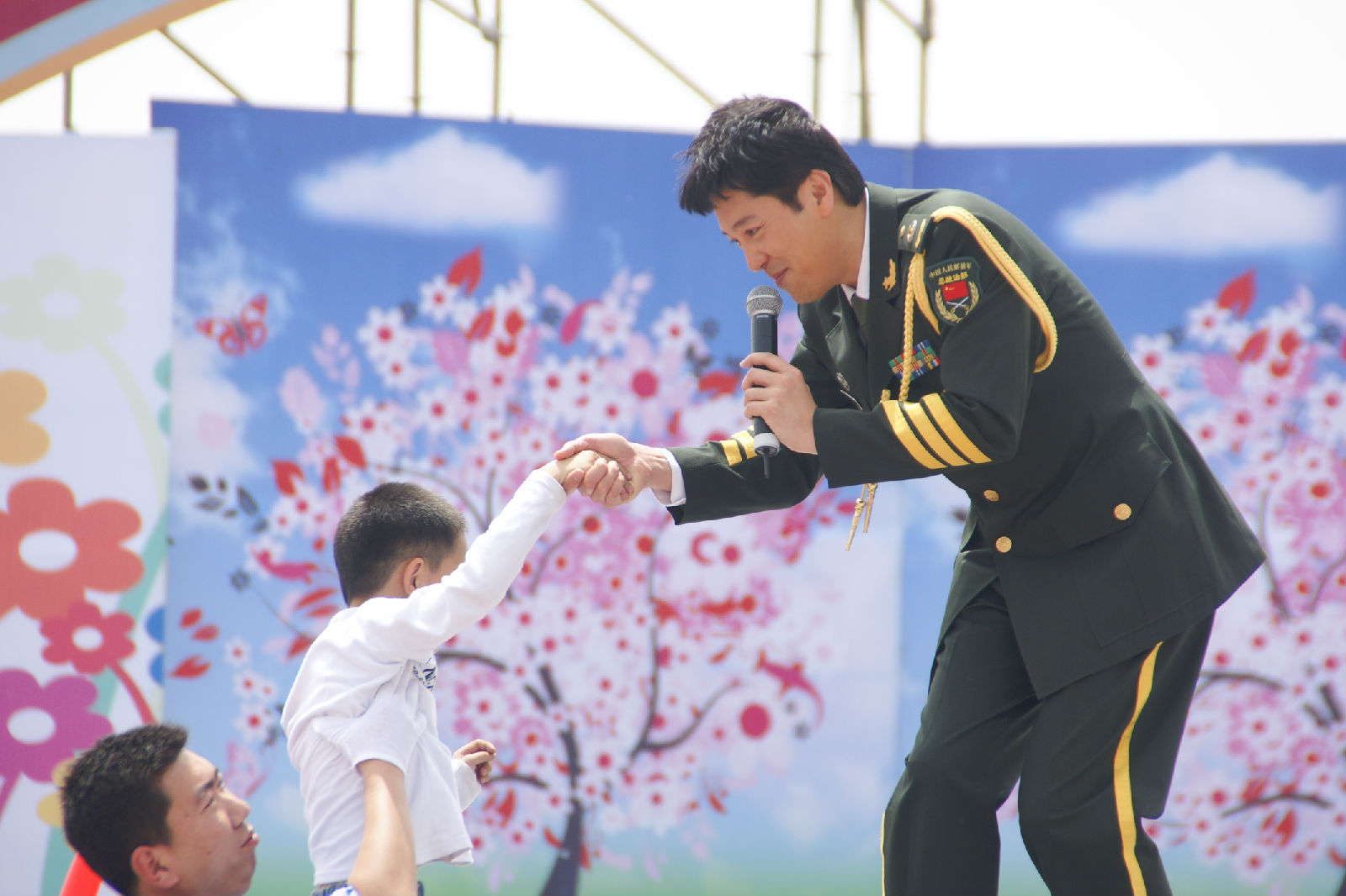 这是她的儿子与蔡蔡握手的图图