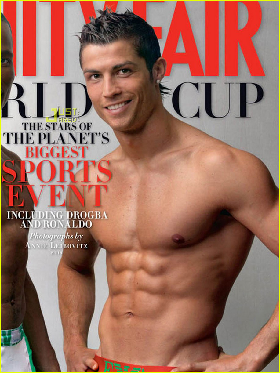 Soccer stars Cristiano Ronaldo (Real Madrid/Portugal) and Didier Drogba (Chelsea/Ivory Coast) strip down to their underwear for the June 2010 cover of Vanity Fair. (They’re wearing the colors of their country flag. Underwear has never looked so patriotic!)