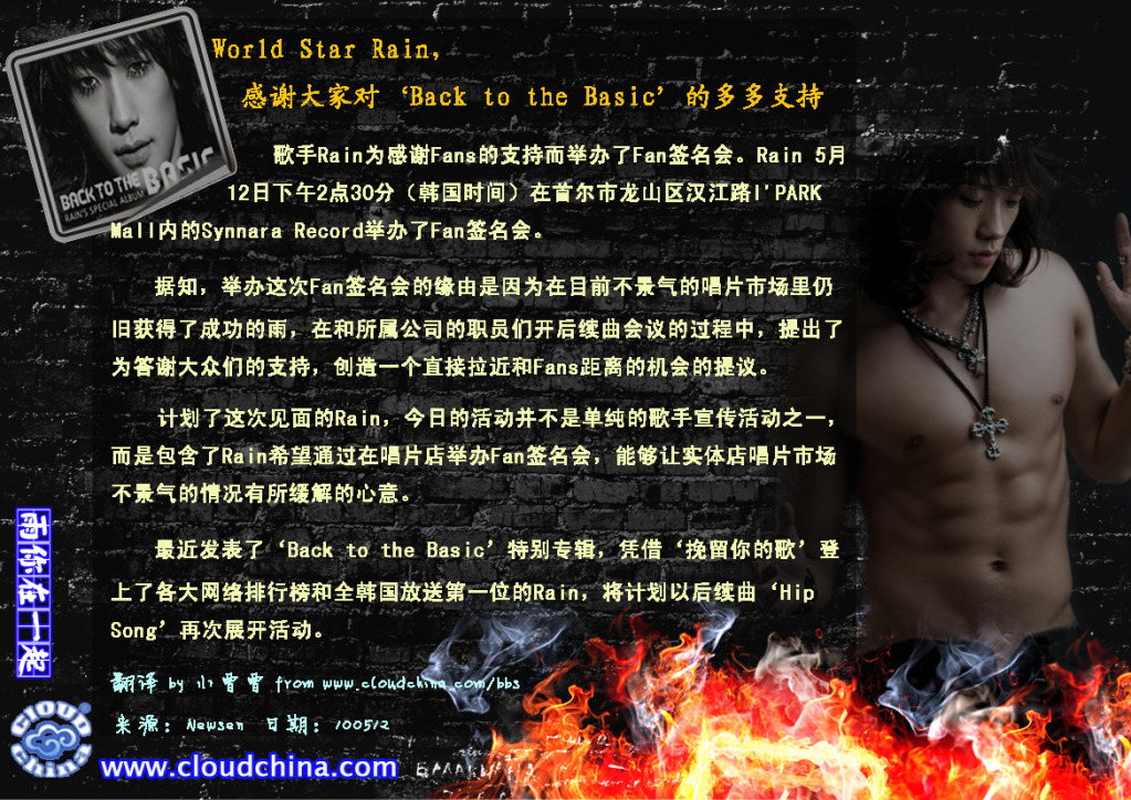 Rain决定召开这次签名会的目的是为了向一直支持他的歌迷们表示谢意的。他将以《HIP SONG》歌曲活动。娃娃发自韩国站