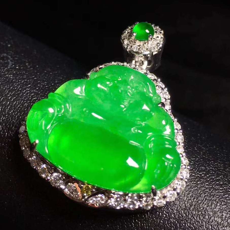 这是糯种飘阳绿翡翠,镶嵌除外,可以看到3到4千