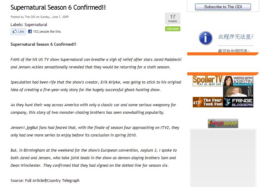 至于洋妞们的帖子应该就不用翻译了吧,大致都是致敬S5和期待S6还有夸奖制作人Kripke的意思,有耐心的筒子可以继续去挖挖看有准确消息没~~~![[喜欢]](/static/emoticons/u559cu6b22.png)