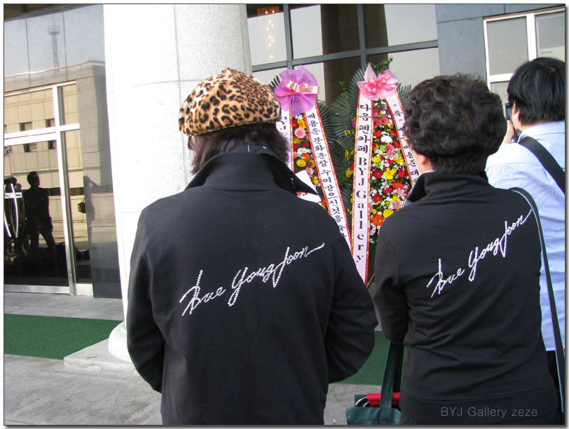 记得在裴吧里我们经常可以看到这样的图片,就是只要是勇俊见面会的现场,都会有裴迷身穿印有勇俊头像的统一服装,那感觉着实有点震撼,我也非常想拥有这种衣服,想当初在2007年的夏天,我特地选了一张勇俊的《外出》黑白特写美图去服装市场专门定制了一件白色T恤,只可惜由于怕太过醒目到现在还没敢穿。感觉这种衣服只能在特定的场合穿才行,特别是像我这个年纪的。