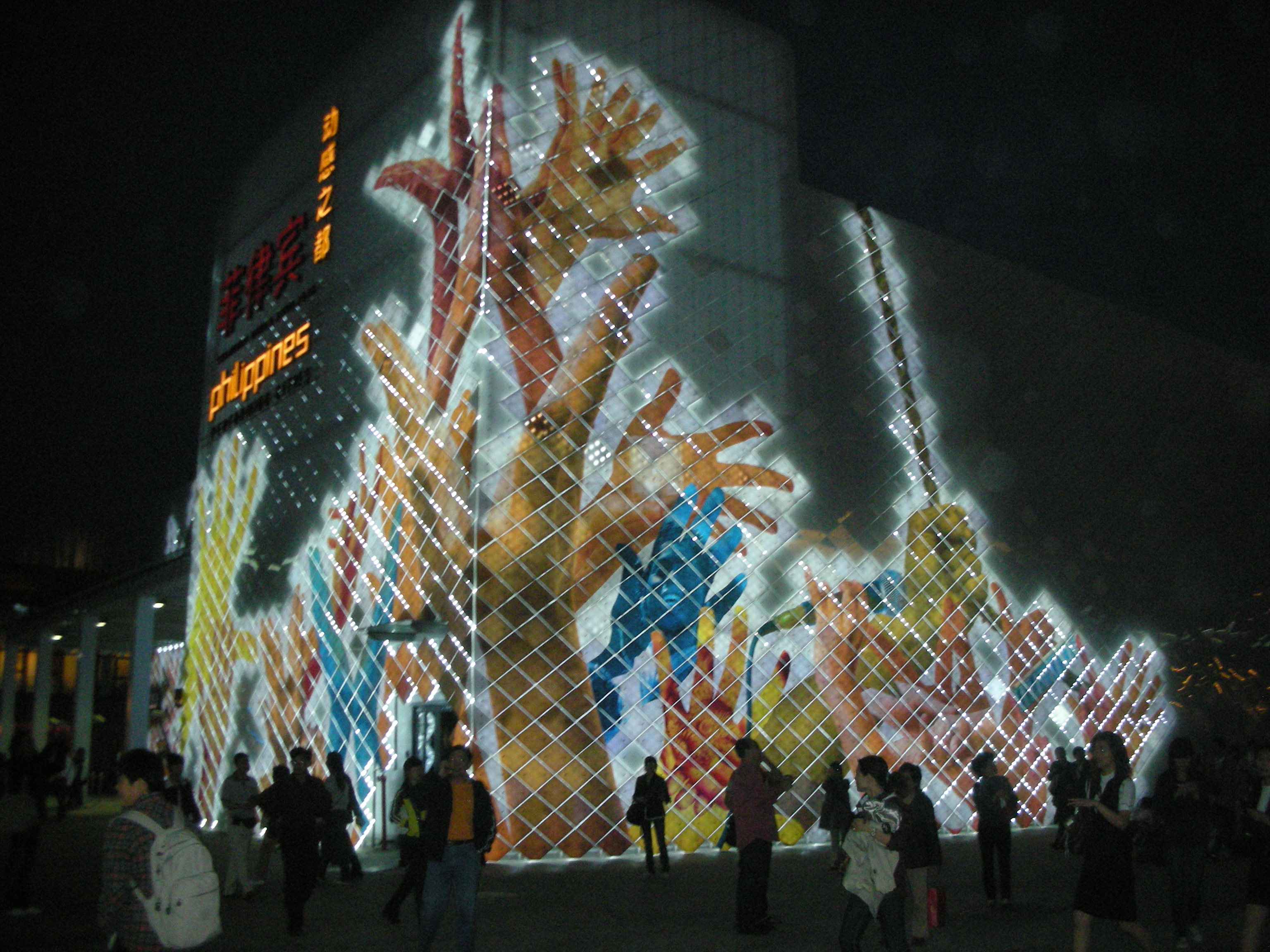 菲律宾的外墙蛮漂亮的。排队时可以看见。