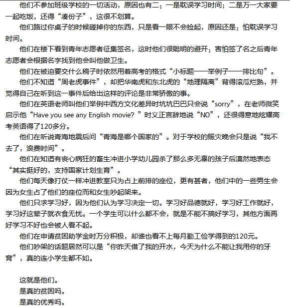 希望咱们学校不要教出文中这种人