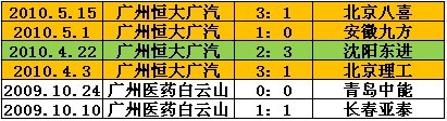 广州恒大广汽最近6场主场比赛结果(3胜2平1负)