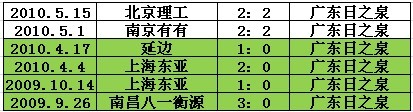 广东日之泉最近6场客场比赛结果(0胜2平4负)