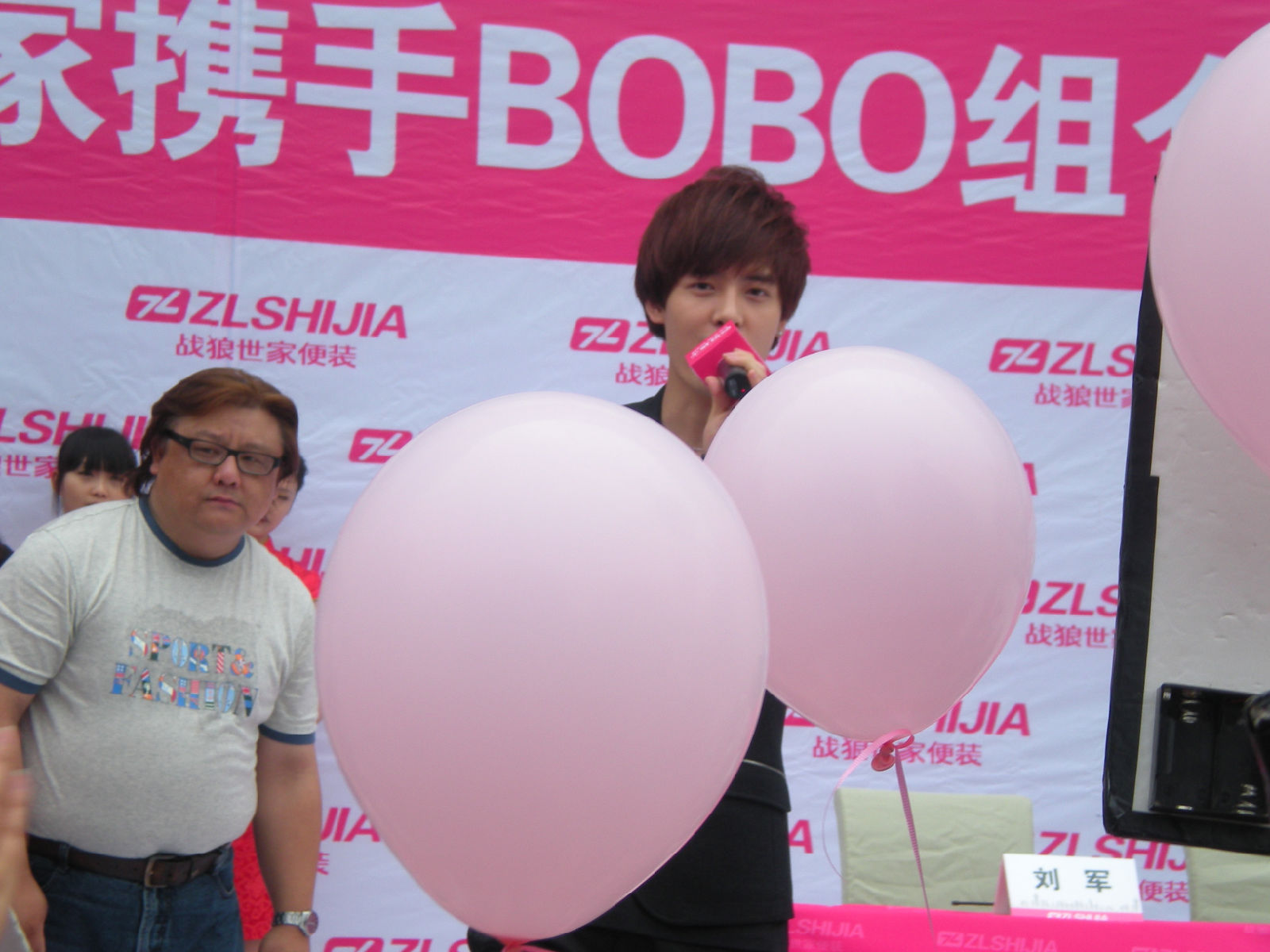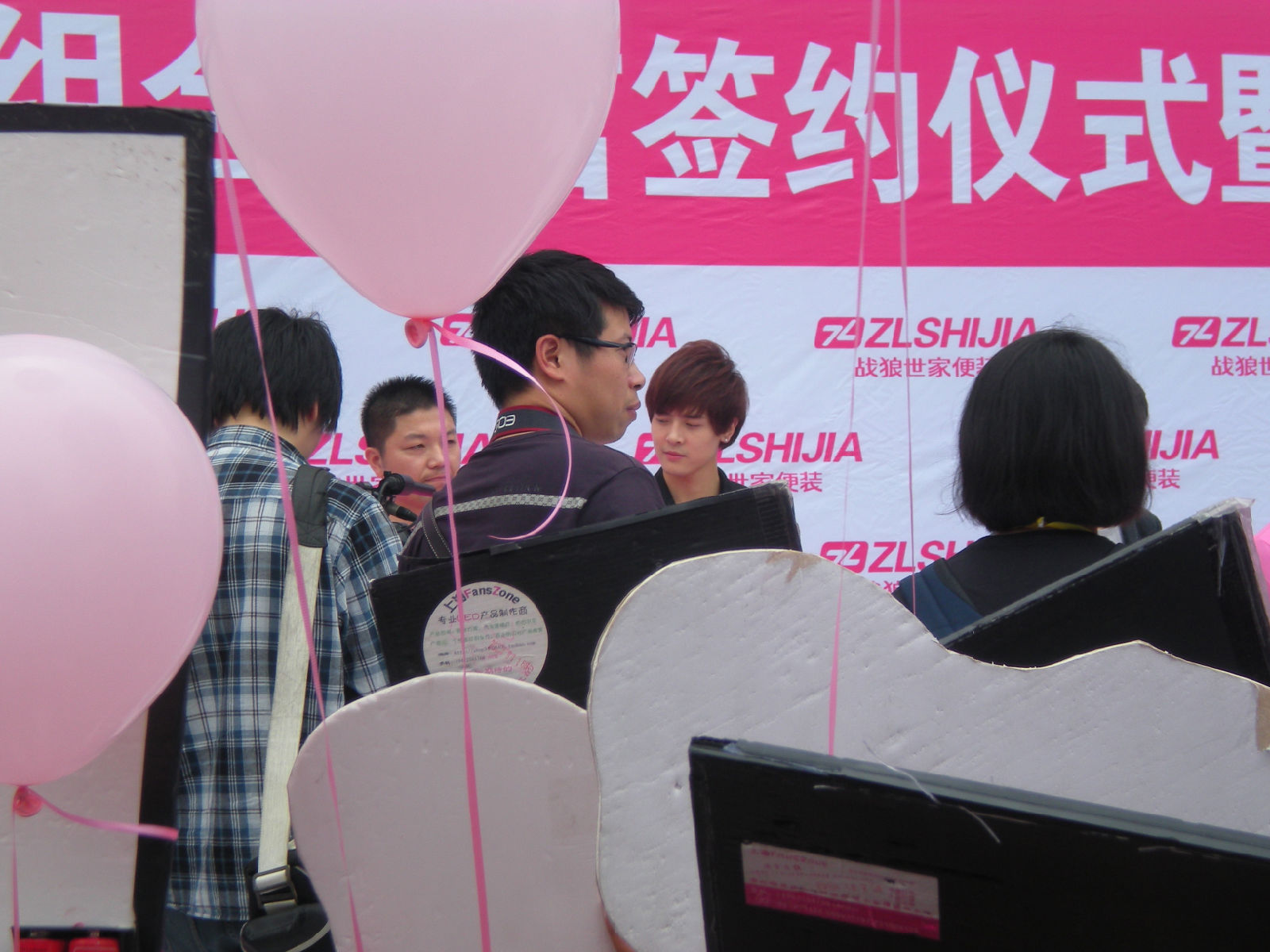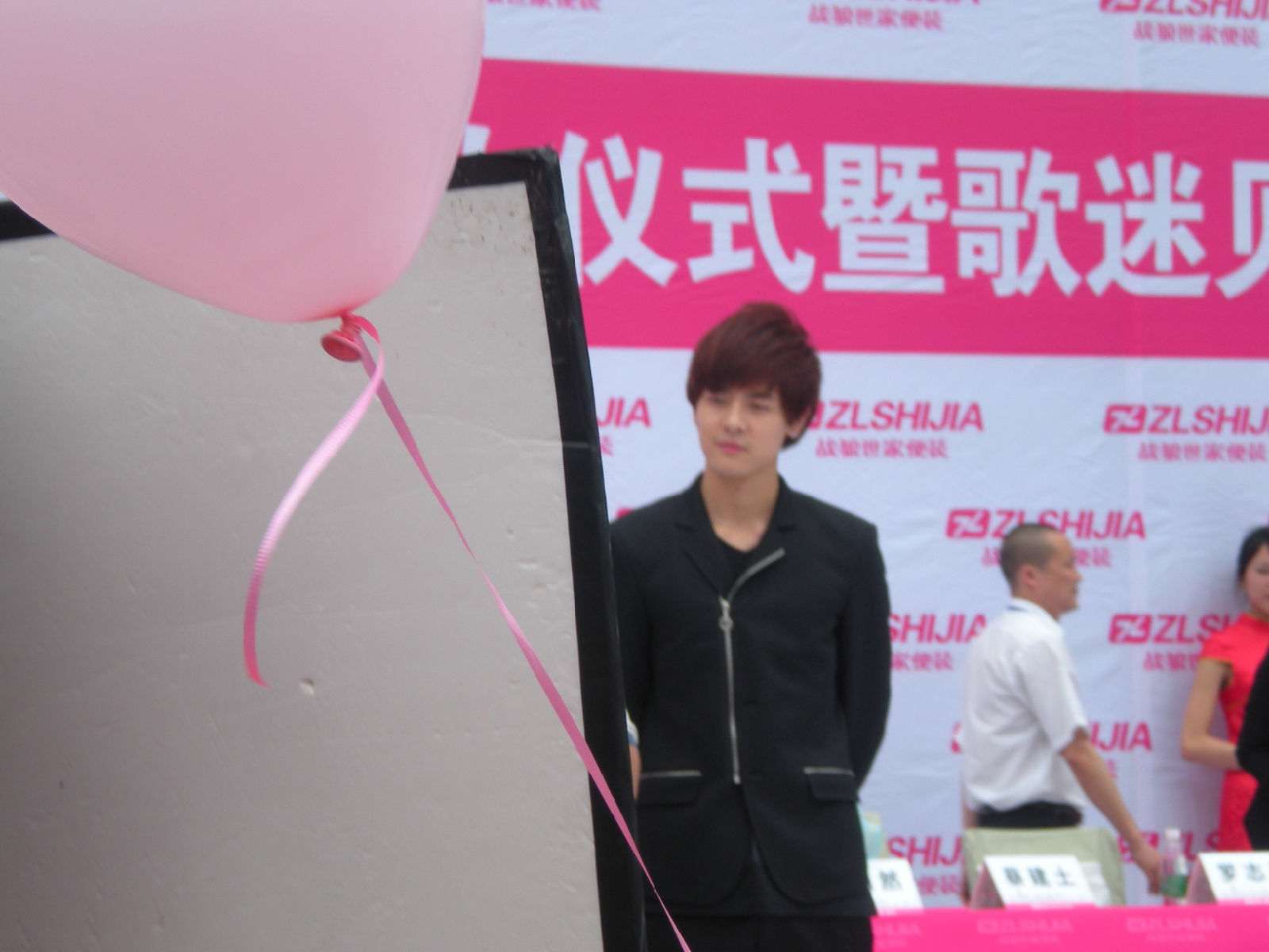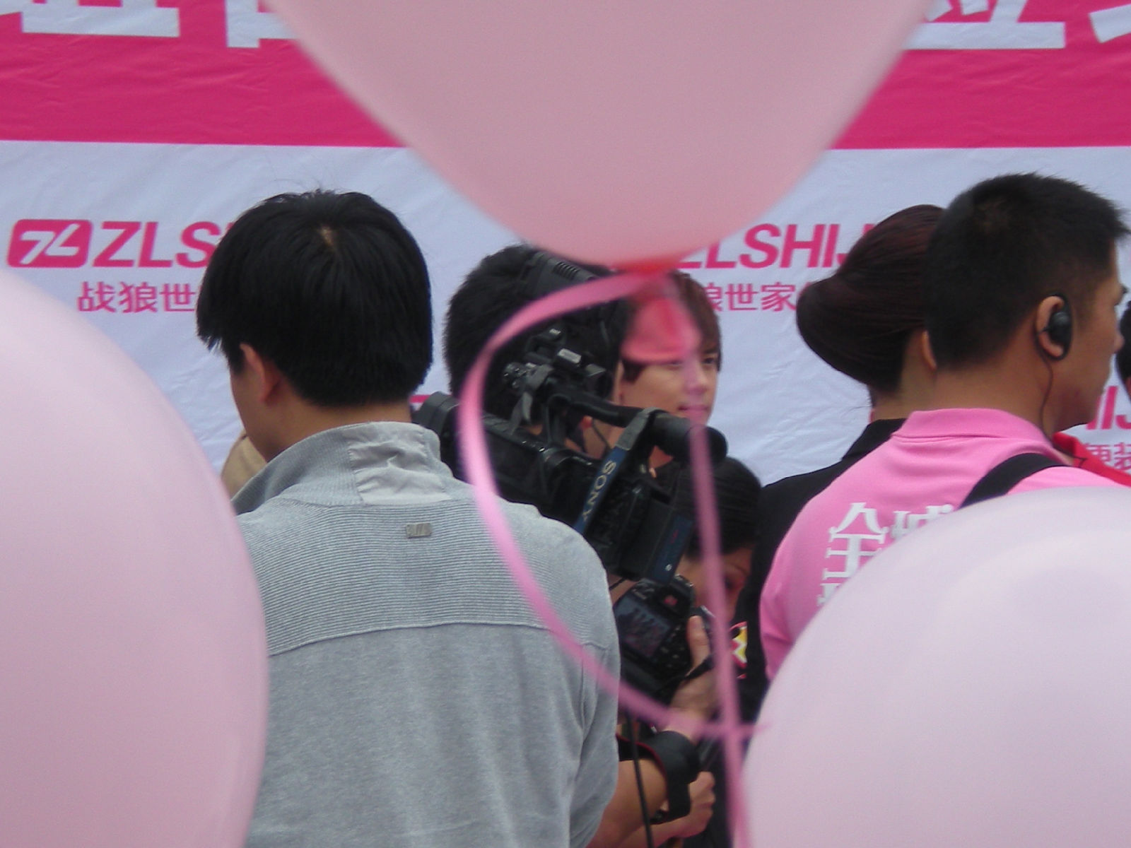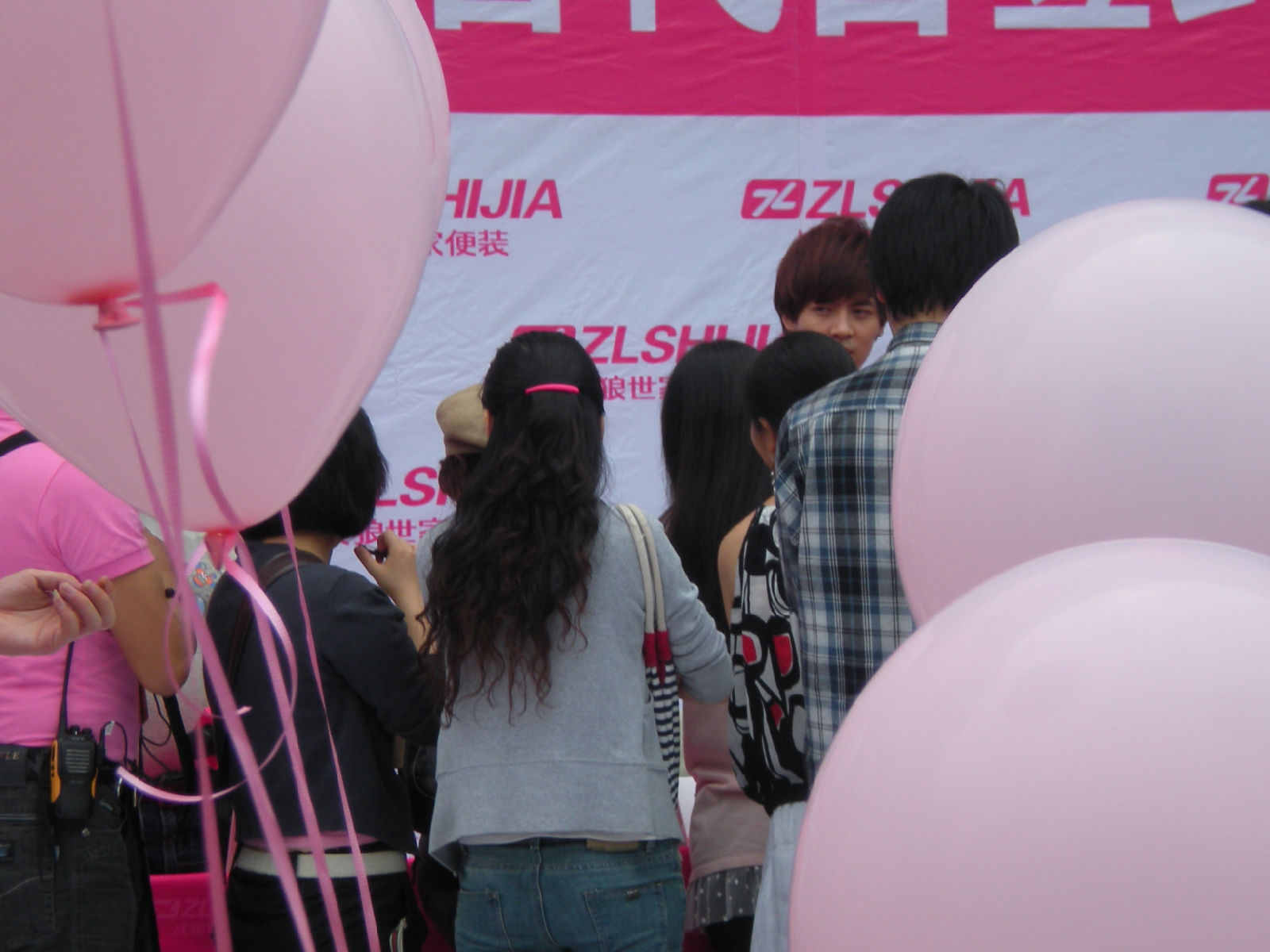 被亲们手中绑的粉色气球挡到了