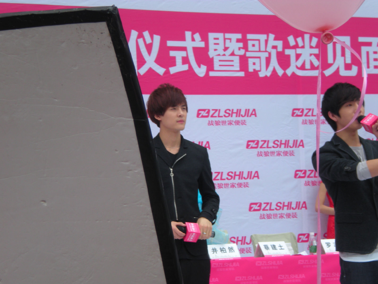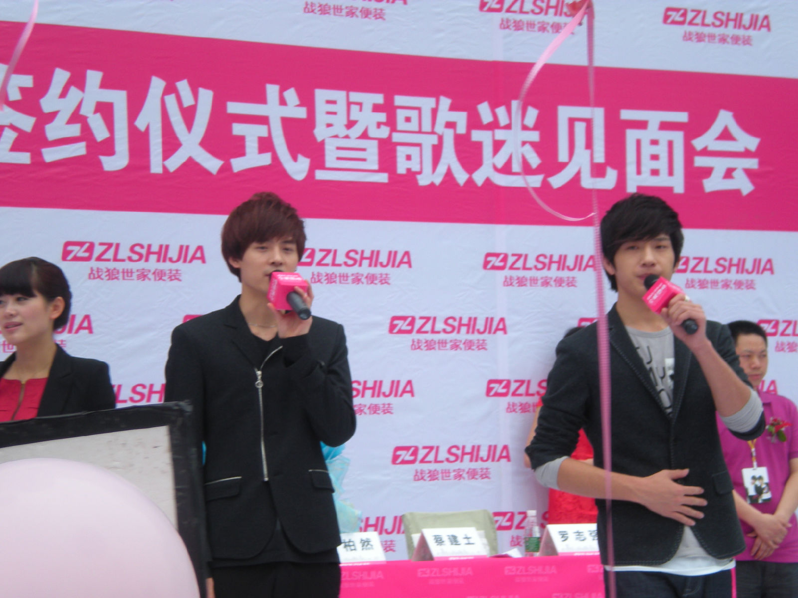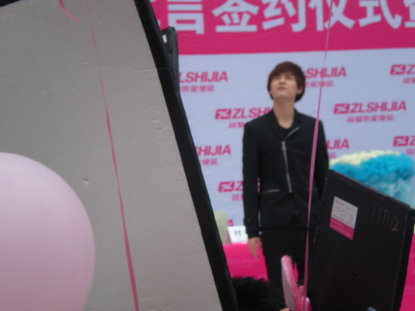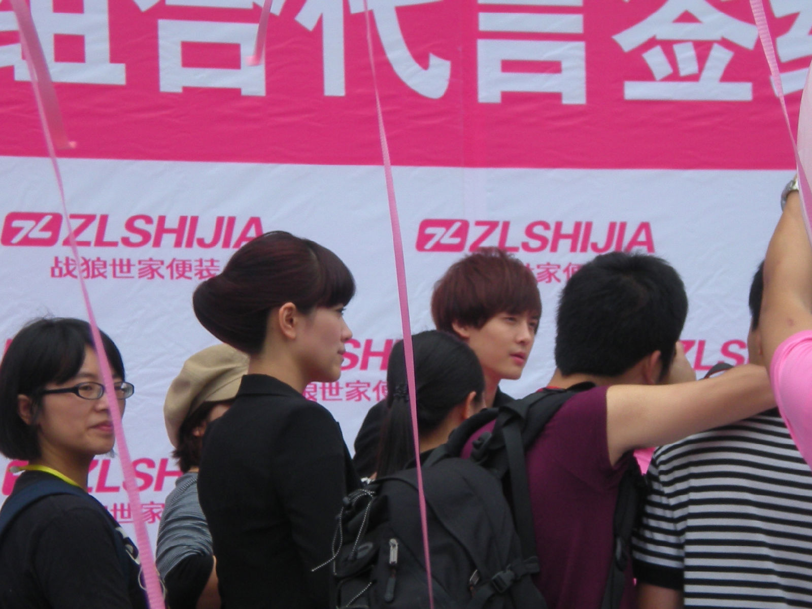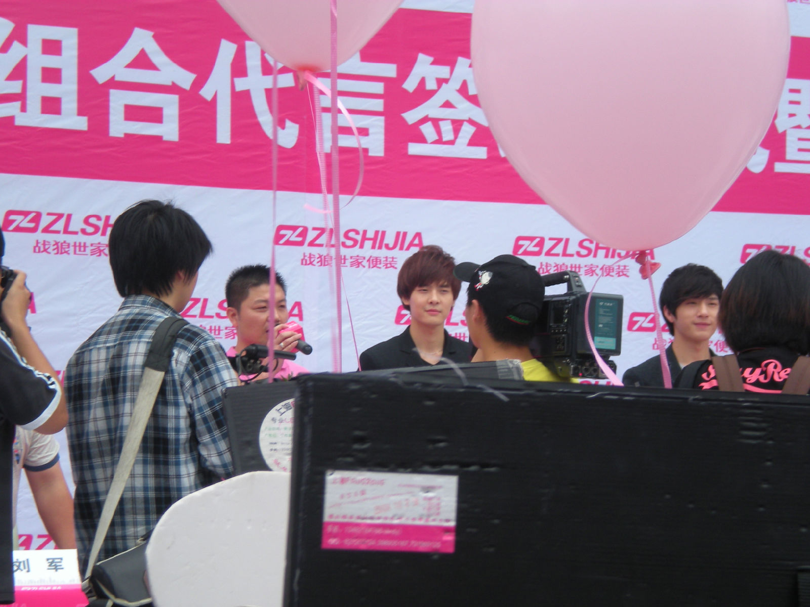被亲们手中绑的粉色气球挡到了