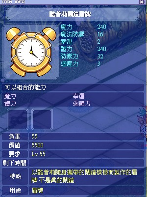 奖励:库普利闹钟盾牌,小君的信