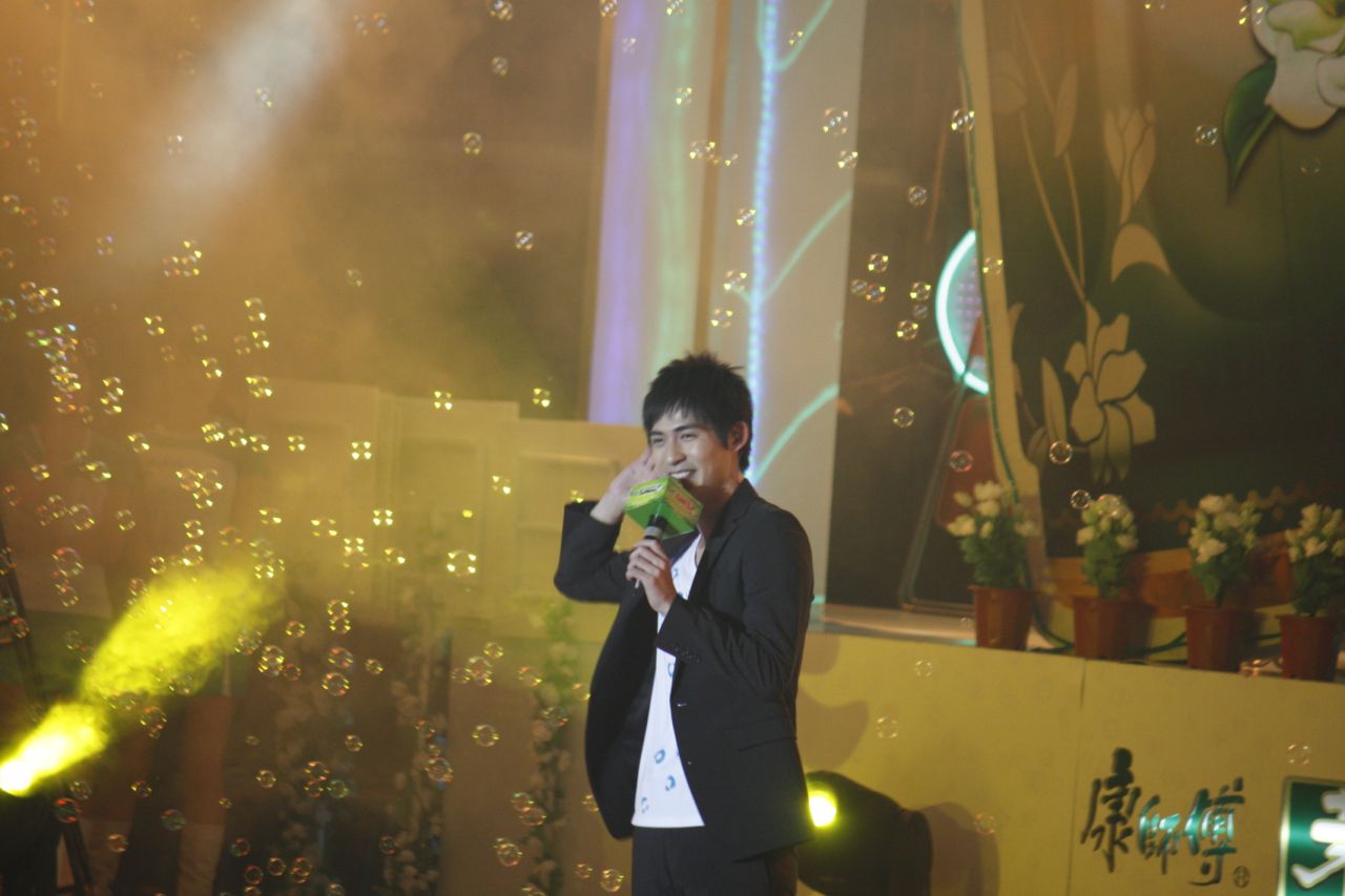 但是悲剧的是,刚看到他几秒钟,他就走入了VIP通道,于是一两百来接机的就隔着玻璃一直跟着他跑(这场面没有人拍下来,要不然真的很壮观)能够隔着玻璃看着他,其实这也是一种幸福,最可恨的是隔着玻璃看的时间也不长,仔一下就走进了休息室,消失在我们的视线中.于是大堆人马又全部冲到贵宾出口处等仔上车.路口被仔迷死死的围个水泄不通,小支先出来看,有很多人喊他.他看到这么多人头都痛了,然后跟工作人员说我不搞了,你们来搞吧,超级可爱的!然后工作人员就叫大家不要挤,让出一条道给车开过来.车开过来以后,仔就出来了,一个微笑一个挥手就把大家弄得激动万分(可怜的花盆在人群拥挤的过程中倒了好几个)这次,我离仔超级近,看着他真的超级瘦,比我上次见他瘦多了(他们说仔现在压力大,又学台语又学日语的,不瘦才怪,嘿嘿)仔上车以后一直在跟大家挥手说拜拜,超级贴心!车门关上后,我们就冲上我们包的车,准备追车去酒店!