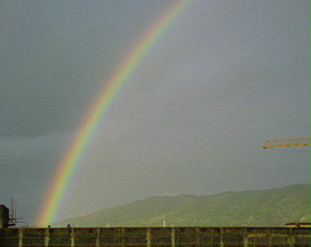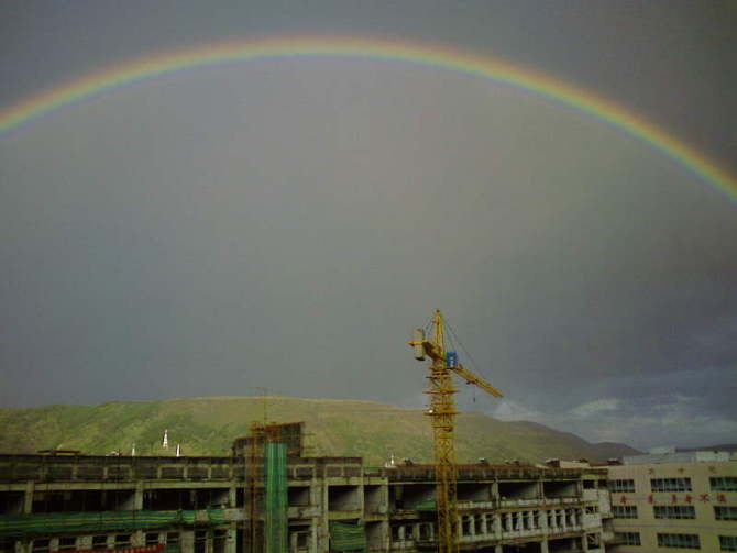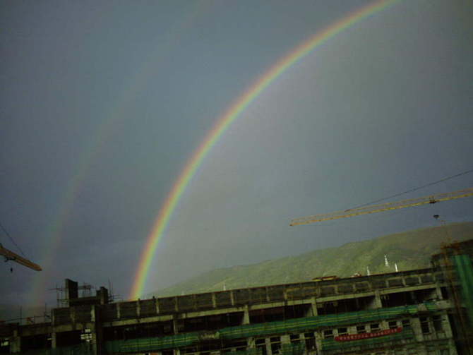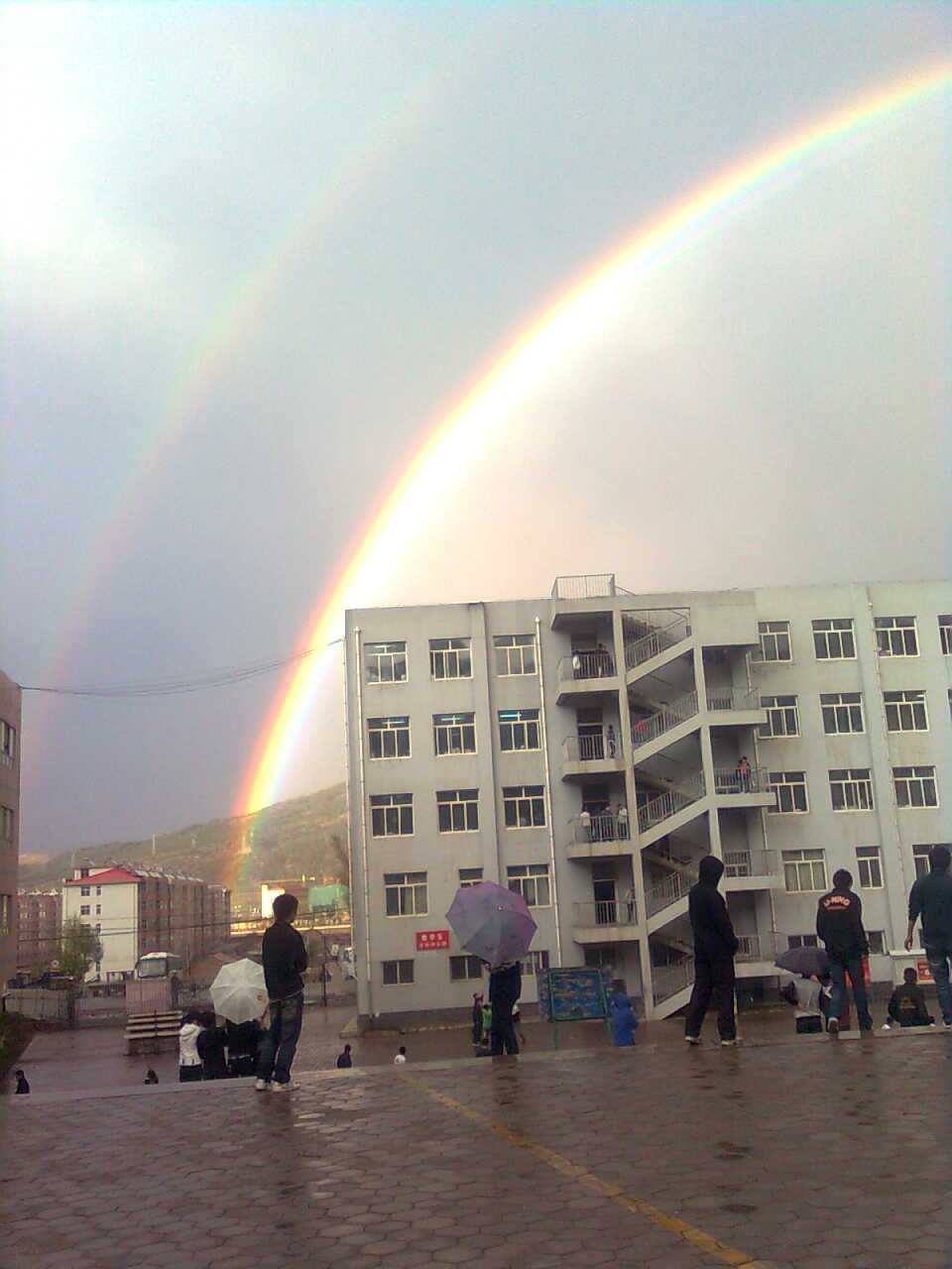 那天一中下雨出现彩虹。(图)