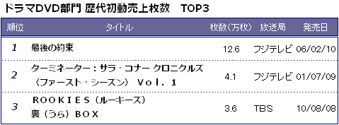 ■ドラマDVD部门 歴代初动売上枚数 TOP3