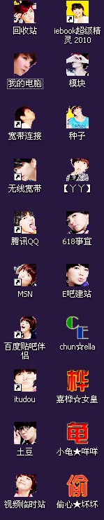 怎么安装应该都知道吧 ~☆`~反正系统的 ~..`.像我的电脑.~文档‘..☆垃圾桶`~.邻居都是右击桌面-属性-桌面-自定义桌面 ~`.然后选你要改图标的那个~~再点更改图标`☆`找到妞的图标≈~~.确认就好.~≈