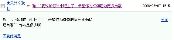 这两年,已经彻底影响,或者说主导了我的一生,扭曲?扭转了我的性格。贴吧经历过一次大变动,大动乱,天昏地暗的。我不希望这种情况再次发生了,我也不希望high吧变成别的性质的贴吧,所以抢掉了“★天外♀飞仙”吧主的吧主位置,欺负她!!