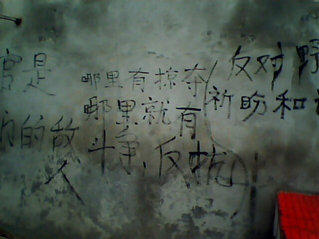 在这些打仗用的的汽油瓶旁还有一句我没照下来的。。。“枪杆子下出政权”