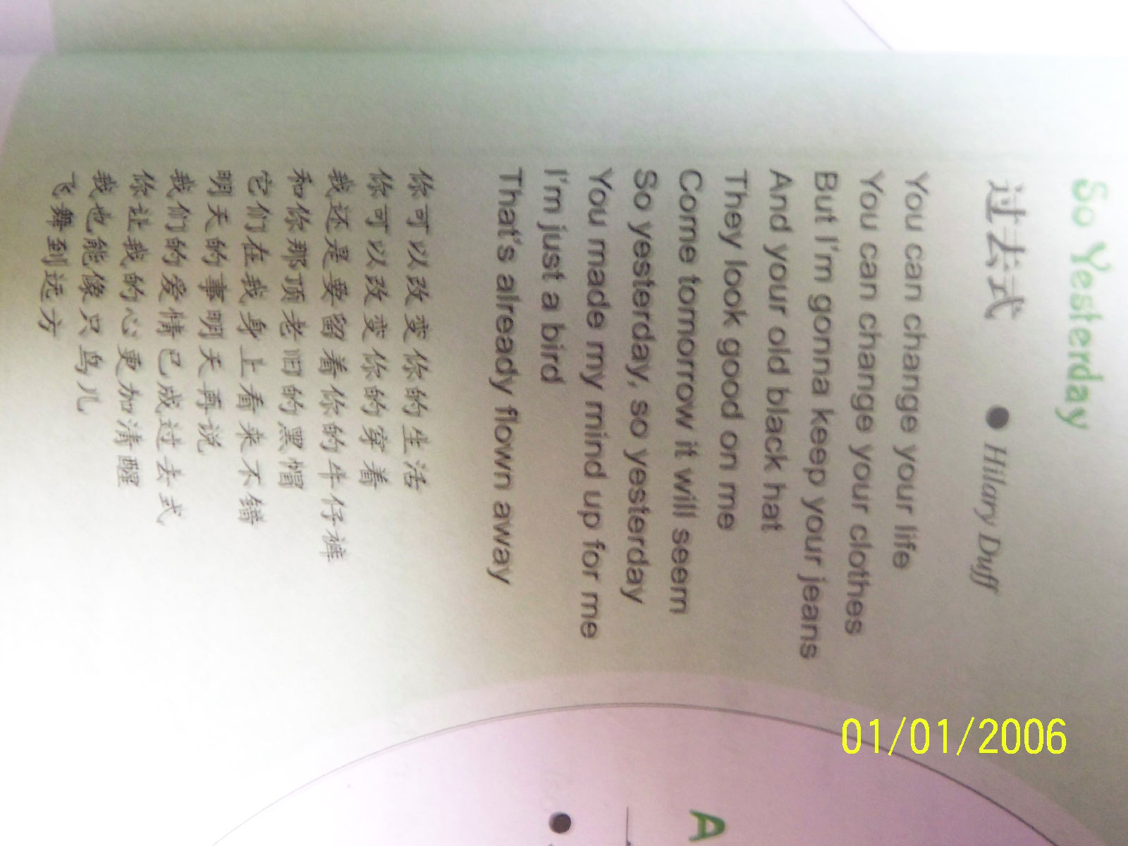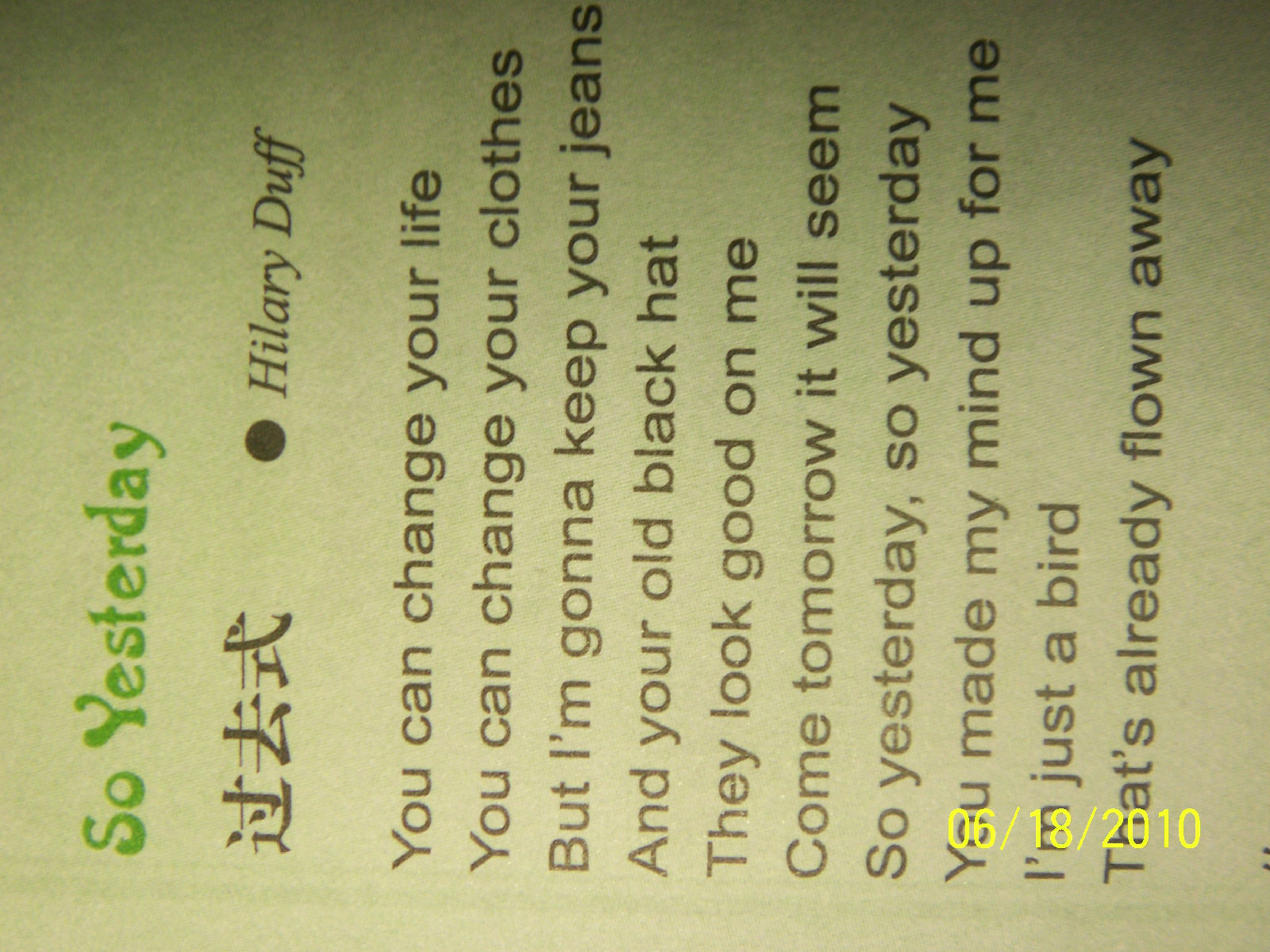 希希的 SO YESTERDAY 被译为 过去式放在上面 .