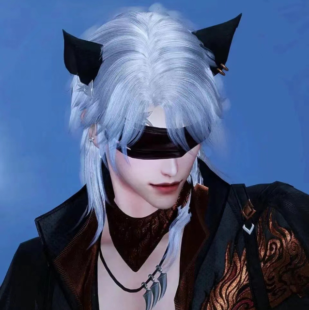 游戏角度,拉远了看,灰发黑猫耳朵很明显