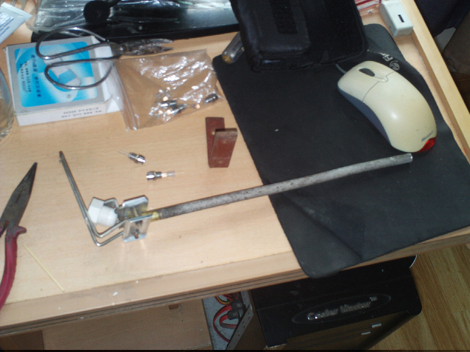 准备在背包开洞的,地台没想好是用木板还是用水泥浇,还在我爸那翻箱倒柜挖了10个高亮白光二极管来,弄在地台里面做照明
