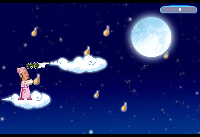 就是在云上跳来跳去,顺便吃鸡腿,鸡腿吃的越多还没有掉下去,分越高,囧