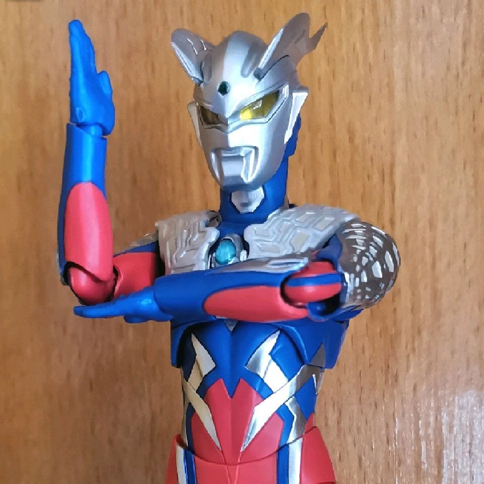 身体上的所有紫色色调全部没做出来,身体只有蓝色到白色的渐变,只有复眼末端才有一点紫色。身上的星星都采用白色移印还原,边缘锐利,没有渐变效果显得非常突兀。主体造型和基础一致不必说。神骑书还是没有图案,但刃王剑的红色纹章分出来了。右手的橙白渐变倒是有还原,但手甲还是替换的结构,不知道会给几个。