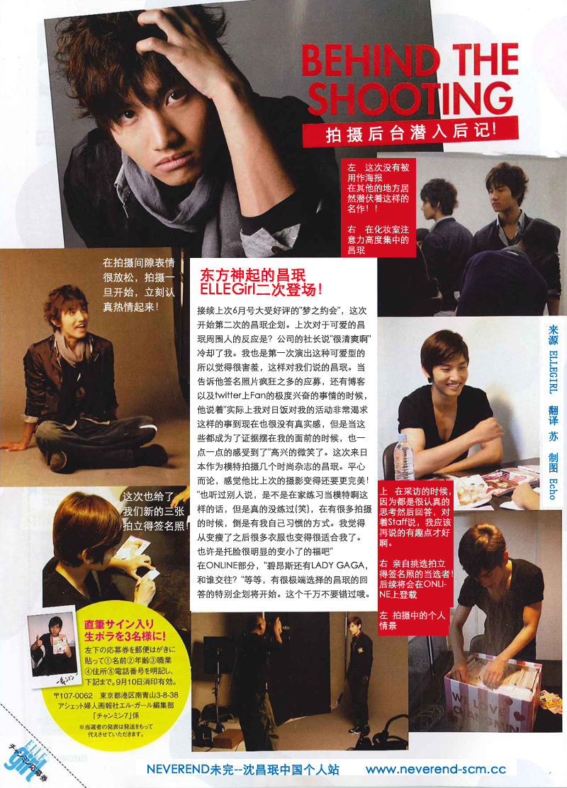 接续上次6月号大受好评的"梦之约会",这次开始第二次的昌珉企划。上次对于可爱的昌珉周围人的反应是?公司的社长说"很清爽啊"冷却了我。我也是第一次演出这种可爱型的所以觉得很害羞,这样对我们说的昌珉。当告诉他签名照片疯狂之多的应募,还有博客以及twitter上Fan的极度兴奋的事情的时候,他说着"实际上我对日饭对我的活动非常渴求这样的事到现在也很没有真实感,但是当这些都成为了证据摆在我的面前的时候,也一点一点的感受到了"高兴的微笑了。这次来日本作为模特拍摄几个时尚杂志的昌珉。平心而论,感觉他比上次的摄影变得还要更完美!"也听过别人说,是不是在家练习当模特